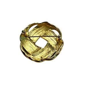 Vintage Erwin Pearl gold tone brooch - classic mid century style pin. Round, textured, open circle wreath style that will go with everything. Approximately 1.75" diameter. Classic and conservative. In excellent vintage condition - light wear - no damage or flaws.