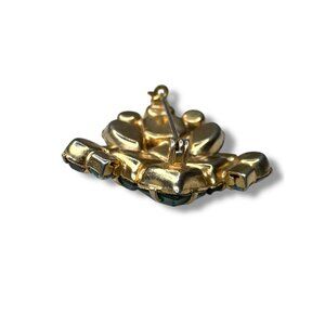 Vintage Gold Tone Brooch With Prong Set Crystals In Purple Blue & Green 1.75" x