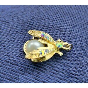 Vintage Gold Tone Bumblebee LadyBug Insect Iridescent Rhinestones Pendant Charm