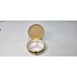 Beautiful vintage pill box features a variety of colorful butterflies on the top. Push button closure works great. The inside features 3 equal sized compartments. Minimal signs of wear/use.