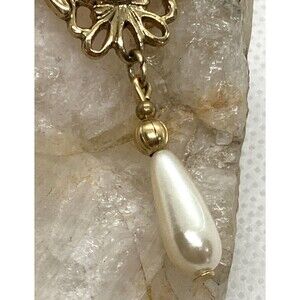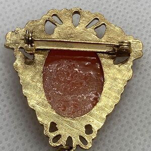 Vintage Gold Tone Cameo Brooch Pin Ornate Border Faux Pearl Dangle Women's Face