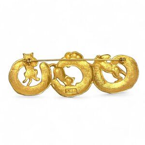 Vintage Gold Tone Cat Pin Four Cats Playing 3"L