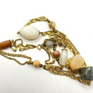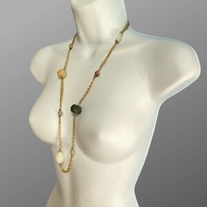 Vintage Gold Tone Chain With Natural Stone Beads Long Necklace