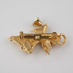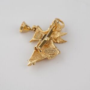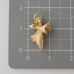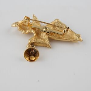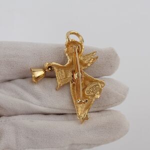 Vintage Gold Tone Cherub Angel Ringing Bell Brooch Pin. This elegant piece is in good pre-owned condition.