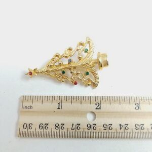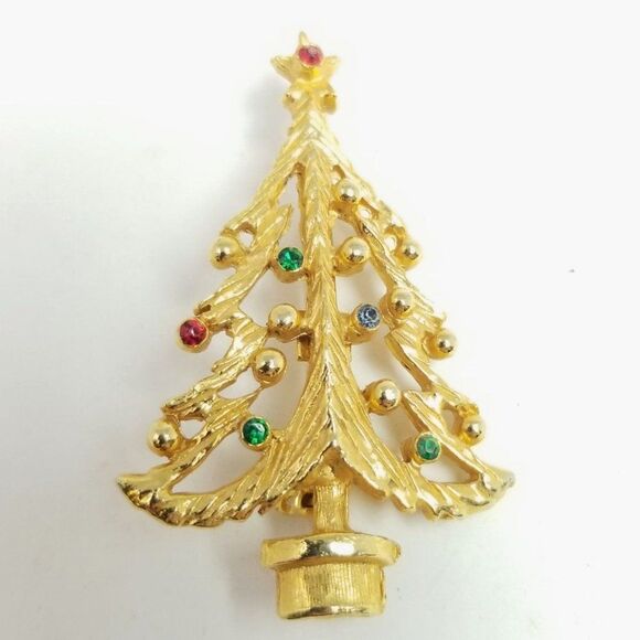 Vintage Gold Tone Christmas Tree Brooch, Holiday Festive Retro Estate Ornaments