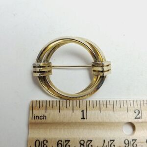 Vintage Gold Tone Circle Brooch, Minimal Modern Design, Unisex Twist, Estate