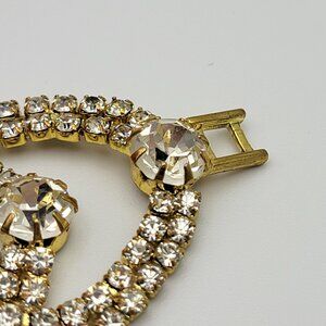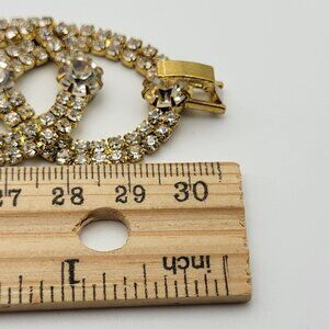 Vintage Gold Tone Clear Crystal Statement Chain Bracelet 7" Fold Over Clasp