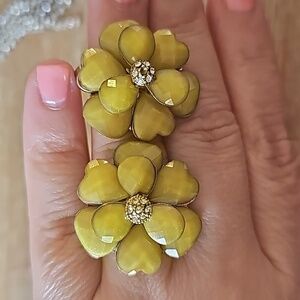 Gorgeous Vintage Gold Tone, Clear Rhinestones and Yellow/Green Glass Flower Earrings in excellent condition
