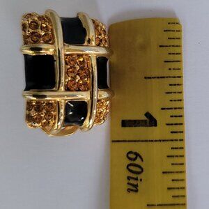 Vintage Gold and Black Tone Clip-On Earrings With Rhinestone