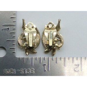 These vintage gold tone clip-on earrings feature an intricate leaf and floral swirl design, offering timeless elegance for any refined jewelry collection.