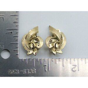 Vintage Gold Tone Clip-On Leaf Earrings Floral Swirl Design by Lisner