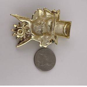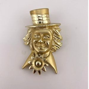 Vintage‎ Gold Tone Clown With Hat Flower Statement Brooch Pin