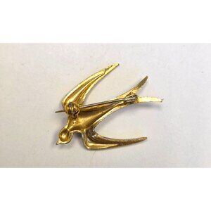 This vintage swallow bird brooch showcases an elegant gold tone with detailed black enamel accents. A timeless addition to elevate any outfit or collection.
