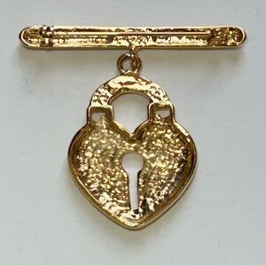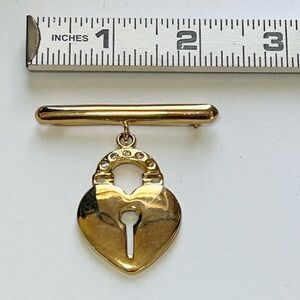 Vintage Gold Tone Dangling Heart Padlock with Rhinestones Brooch (READ FOR FLAW)