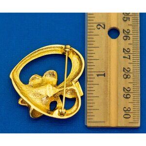Vintage Gold Tone Diamond Gem Blue Rhinestone Ribbon Brooch by Avon D37