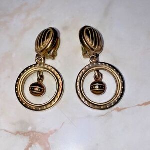 Vintage Gold Tone Drop Dangle Earrings 2" Long Circular Design Statement Jewelry