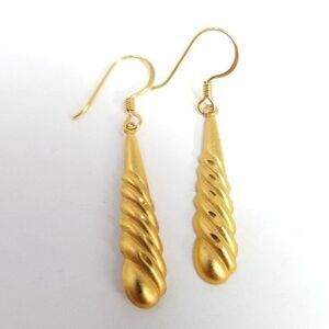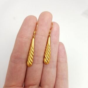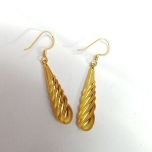Vintage Gold Tone Drop Shape Dangle Earrings, Spiral, Minimal, Light Weight