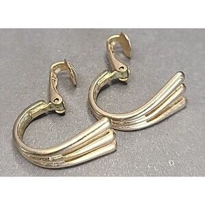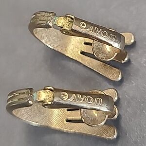 Crafted from metal with an unknown type of metal, these earrings are .75 inches in length and feature a signed Avon brand name. The antique and vintage feel of these earrings make them a unique addition to any jewelry collection. With no stone inlay, the focus is solely on the gold-toned hoops. The country/region of manufacture is unknown, adding to their mystery. Add these art-inspired earrings to your collection now and complete any retro look.#vintage #earrings #vintageearrings #clipon #cliponearrings #Avon #avonclipon Bin QQ-15