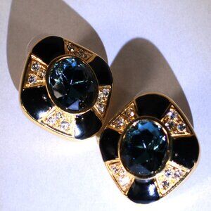 Vintage Gold-Tone Earrings with Clear and Blue Rhinestones: A timeless accessory for those who appreciate elegance these earrings are the perfect choice. The shimmering rhinestones catch the light beautifully adding a touch of sophistication to any outfit. Ideal for casual and formal occasions, these earrings are a must-have accessory for any jewelry collection.