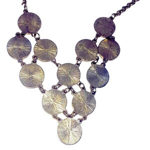 Vintage Gold Tone Enamel Circle Bib Statement Necklace