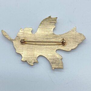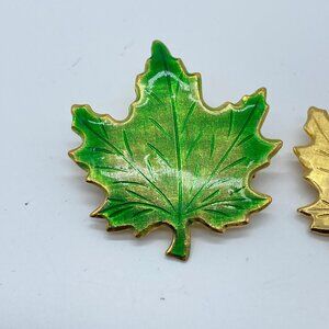 Add a touch of nature-inspired elegance to your outfit with this set of three vintage gold-tone enamel maple leaf brooch pins. Featuring vibrant colors and exquisite detailing, these brooches are perfect for fall-themed attire or as a unique gift for nature lovers.
