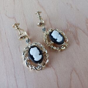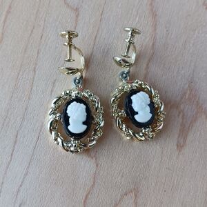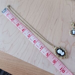Vintage Gold Tone Faux Cameo Necklace And Screw Back Earring Set Costume Jewelry