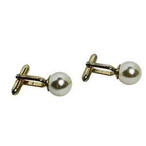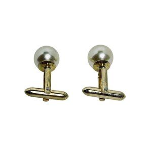 Vintage Gold Tone Faux Pearl Cufflinks (5916)