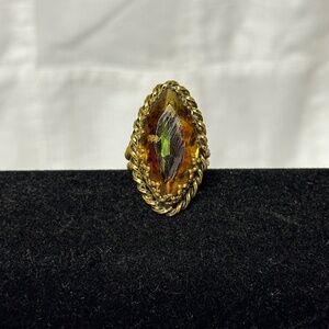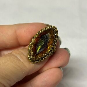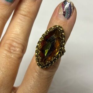 Vintage Gold Tone Faux Topaz Ring Size 4