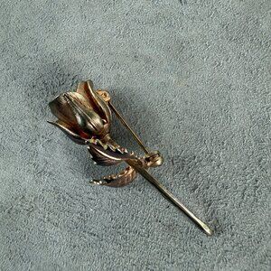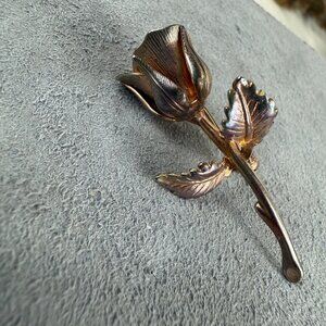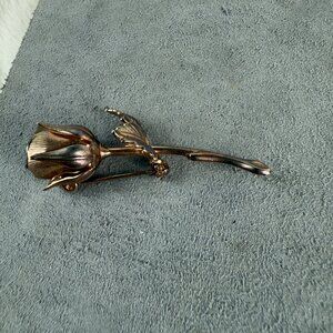 Vintage Gold Tone Figural Rose Brooch .75" X 1.75"