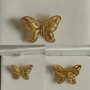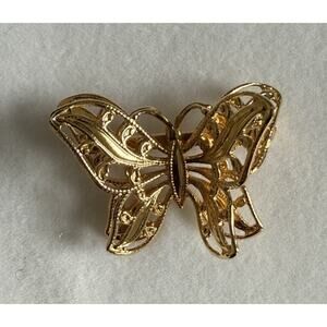 Vintage Gold Tone Filigree Butterfly Brooch Pin Elegant Openwork Design