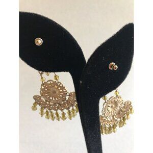 Vintage Gold Tone Filigree Pierced Wire Chandelier Dangle Earrings Chartreuses