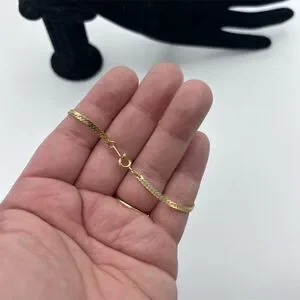 Vintage Gold Tone Flat Herringbone Chain Bracelet
