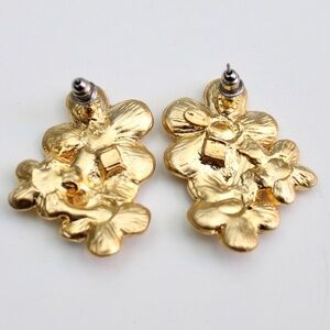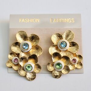 Vintage Gold Tone Floral Cascading Drop Multi-Stone Pierced Earrings NWT