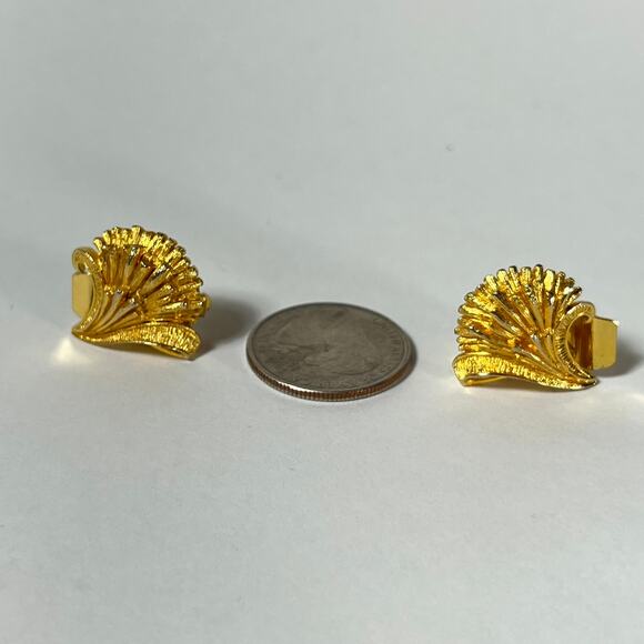 Vintage Gold Tone Flower Earrings, Clip On Swirl Midcentury