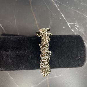 Unknown designer- unable to find makers mark- however I thought it looked like a Trifari piece but unable to find makers mark. Has good stretch in the bracelet and measures to be about a 7 in diameter. Width of flower cluster about 2". In very good condition- minimal scuffing