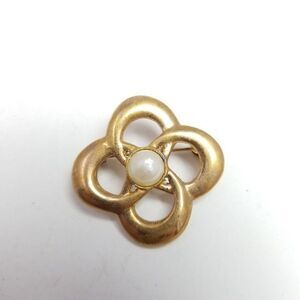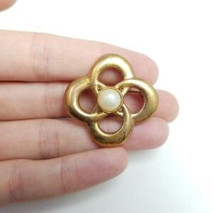 Vintage Gold Tone Flower with Faux Pearl Center, Minimal Design Retro Estate