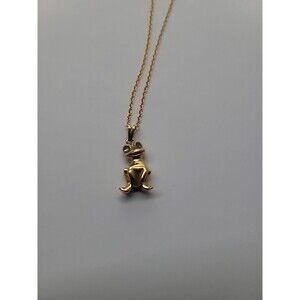 Vintage Gold Tone Frog Pendant Necklace with Green Stone Eyes Whimsical Animal