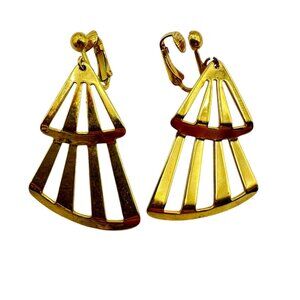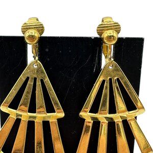 Vintage Gold Tone Geometric Clip On Earrings Jewelry Accessory