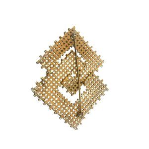 Vintage Gold Tone Geometric Square Pattern Women's Costume Jewelry Brooch