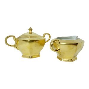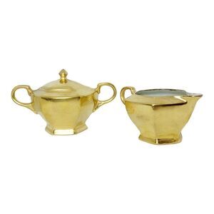 Vintage Gold Tone German Porcelain Sugar And Creamer Set