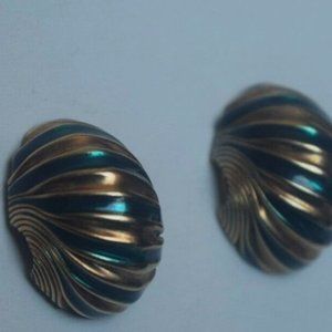These earrings are so pretty with the gold and green enamel is a wrapped or swirled design, and with a large oval shape. These earrings don't show any damage or wear but are Vintage.