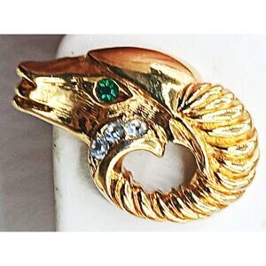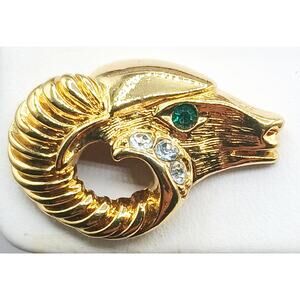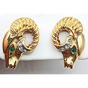 Vintage Gold Tone Green Eye RAM HEAD Post Earrings
