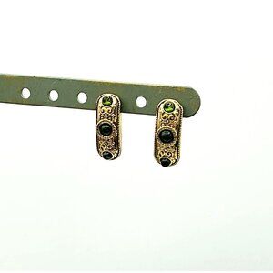 Vintage Gold Tone Green Gems Detailed Filigree Stud Earrings