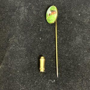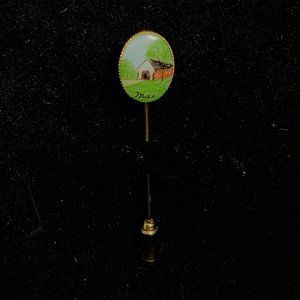 Vintage Gold Tone Hand Painted Covered Bridge Stick Pin Signed Mae.