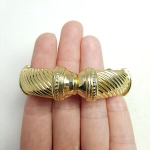 Vintage Gold Tone Hinged Bangle Bracelet Unique Spiral Design, Stacking Estate