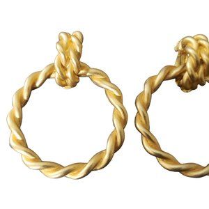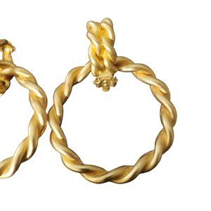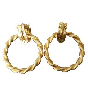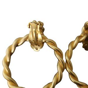 Vintage Gold Tone Hoop Door Knocker Clip Earrings 1.5"