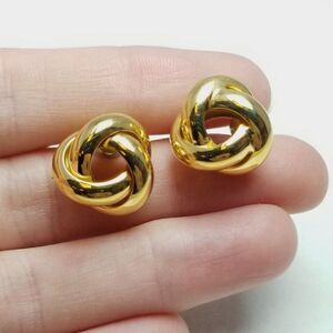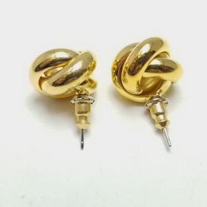Vintage Gold Tone Knot Shape Stud Earrings, Classic Minimal Design, Estate