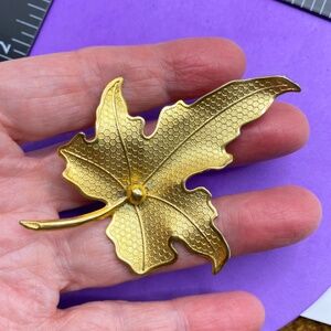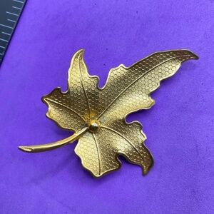 Vintage Gold Tone Leaf Brooch Grannycore. Measures approx 3" and has safety roller clasp. Excellent condition, looks like new and possibly unworn. #42-A