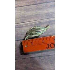 Vintage Gold Tone Leaf Brooch With Aurora Borealis Rhinestones Elegant Sparkle P
