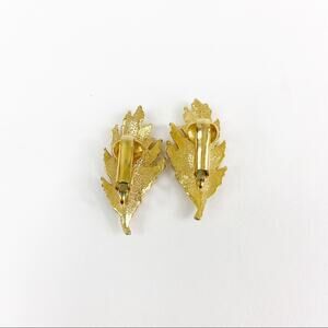 Vintage Gold Tone Leaf Clip On Earrings Some Tarnishing